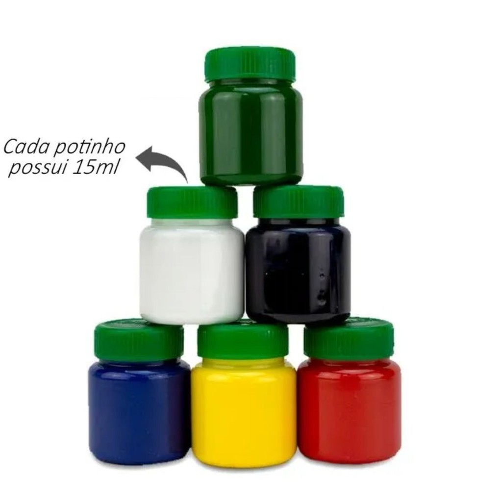 kit Tinta Acrílica Acrilex Fosca Artesanato 6 Cores Potes 15ml