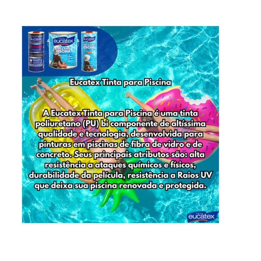 Tinta Epóxi P/ Piscina Azul Pinta Impermeabiliza Fibra Kit com 3 Produtos. -------------------------------------------- #ProdutoComNotaFiscal #EnvioImediato #EnviamosParaTodoOBrasil #RetiradaEmLoja #QualidadeGarantida Eucatex Tinta para Piscina A Eucatex Tinta para Piscina é uma tinta poliuretano (PU) bi componente de altíssima qualidade e tecnologia, desenvolvida para pinturas em piscinas de fibra de vidro e de concreto. Seus principais atributos são: alta resistência a ataques químicos e físicos, durabilidade da película, resistência a Raios UV que deixa sua piscina renovada e protegida. Superfície: Piscinas de concreto Piscinas de fibra de vidro Diluição: Em Piscinas Cimentadas 1ª demão diluído a 40% com pincel, rolo de lã epóxi Demais demãos de 10% a 20% com Eucatex Diluente para PU Pistola: de 30% a 40%. Em Piscinas de Fibra: 10% diluído com Eucatex Diluente para PU Pistola: 20%. ..................................................................................................................................... LOJA ..................................................................................................................................... O grupo SOLUWAN atua neste mercado há mais de 30 anos, possuindo loja física e online. Com 30 anos de história procuramos atender nossos clientes com agilidade, competência, ética e honestidade. Vendemos somente produtos novos e de qualidade garantida. Despachamos em até 24 horas. Entregamos para todo o Brasil. ..................................................................................................................................... DÚVIDAS FREQUENTES ..................................................................................................................................... Pergunta: Como é embalado o produto? Resposta: Todos os nossos produtos vendidos são embalados em caixas lacradas ou plástico stretch. Em respeito ao meio ambiente 90% das caixas são reutilizadas. Pergunta: Quem faz a entrega? Resposta: A entrega é terceirizada, feita via CORREIOS ou TRANSPORTADORA. Pergunta: Posso retirar meu pedido em loja? Resposta: Nós do grupo Soluwan disponibilizamos a opção de retirada em Loja, hoje sendo uma das poucas empresas na plataforma à disponibilizar está opção. Pergunta: O envio é feito em quantos dias? Resposta: Nós enviamos o seu pedido no prazo máximo de 24 horas após a confirmação de sua compra, sendo um dos envios mais rápidos da plataforma. Pergunta: Os produtos são novos ou usados? Resposta: Todos os produtos que trabalhamos são novos e com qualidade garantida. #eucatextintapiscina #poliuretanodequalidade #proteçãoduradoura #altaresistência #renovesuapiscina #tecnologiaavançada #durabilidadeextendida #proteçãouv #pinturaeficiente #fibradevidro #concreto #inovaçãoaquática EUCATEX KIT PISCINA AZUL