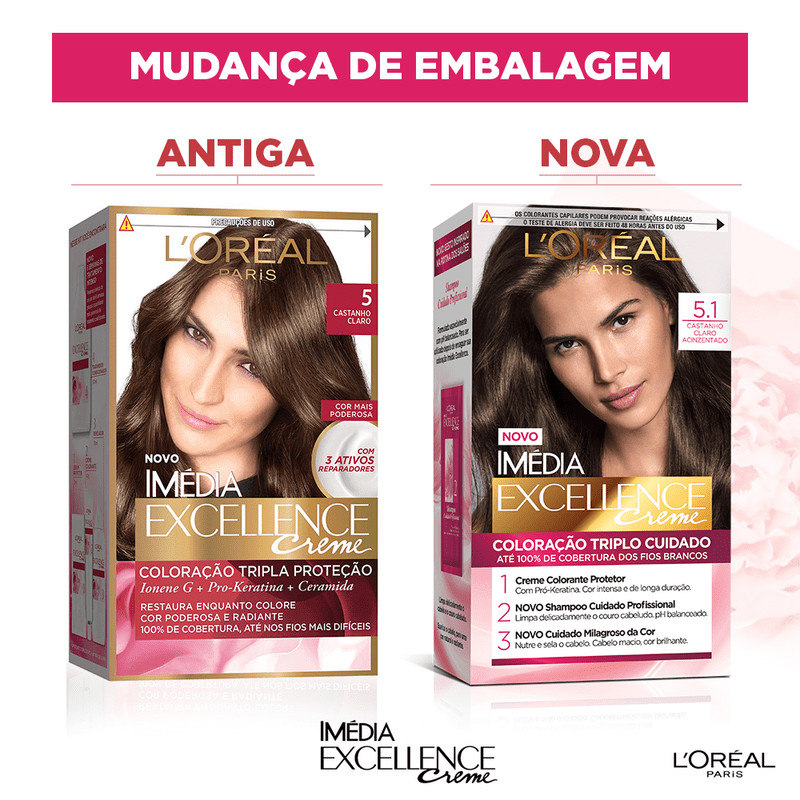 Kit Tintura Imédia Excellence L'Oréal Castanho Claro Acinzentado 5.1