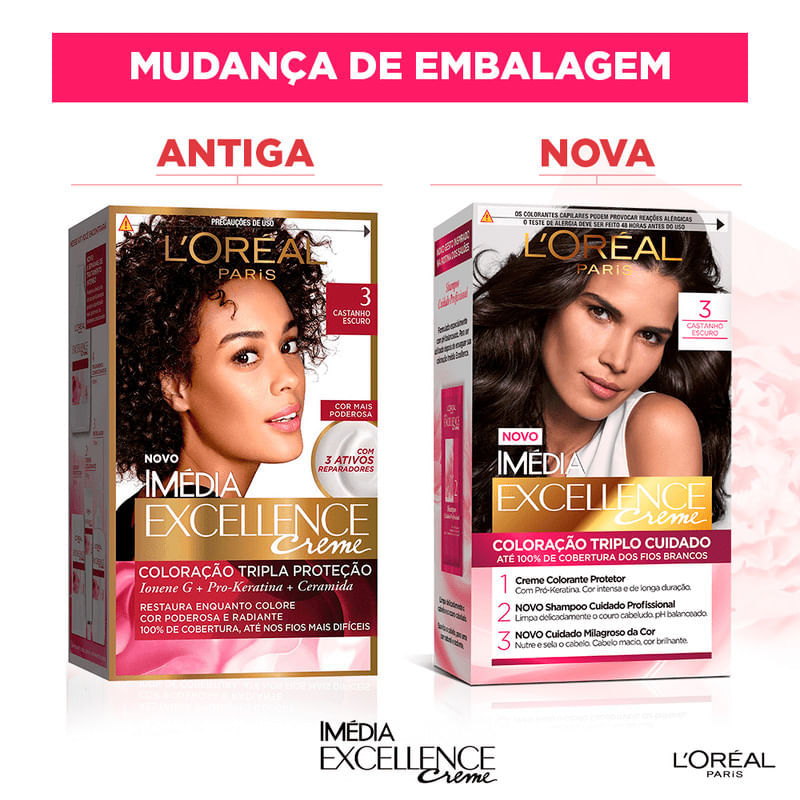 Kit Tintura Imédia Excellence L'Oréal Castanho Escuro 3