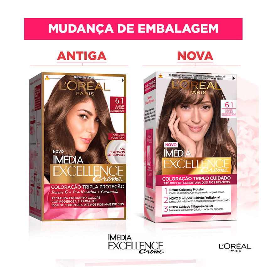 Kit Tintura Imédia Excellence L'Oréal Louro Escuro Acinzentado 6.1