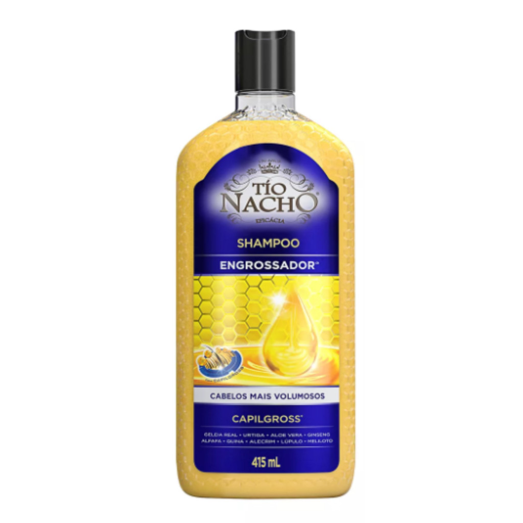 Tío Nacho Shampoo Antiqueda Ervas Milenares 415ml: formulado com extratos naturais, ajuda a fortalecer os fios desde a raiz, reduzindo a queda e devolvendo vitalidade ao cabelo. Tío Nacho Shampoo Engrossador 415ml: ideal para cabelos finos e frágeis, proporciona mais corpo e volume, deixando os fios visivelmente mais encorpados e saudáveis. Combinados, esses dois shampoos cuidam profundamente da saúde capilar, fortalecendo, nutrindo e proporcionando cabelos mais fortes, densos e cheios de vida.