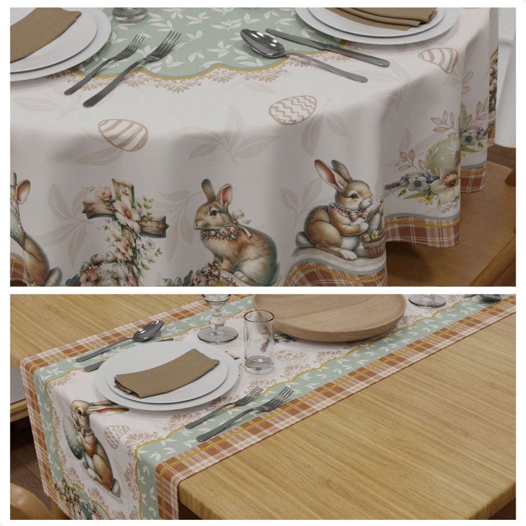 Kit Toalha de Mesa Redonda Páscoa e Trilho Caminho de Mesa Estampado - Mesa Posta