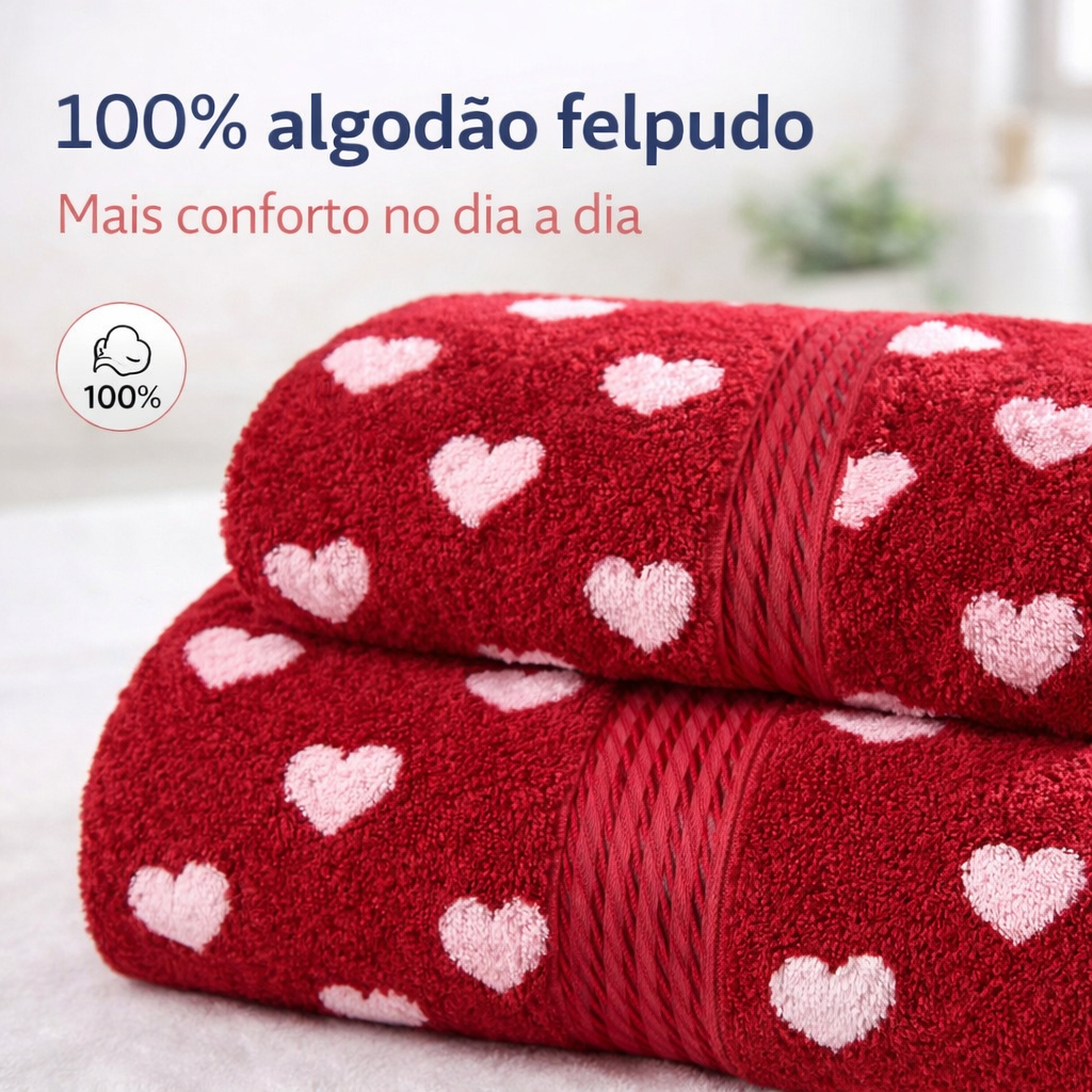 Kit Toalhas Banho Rosto Dohler Prisma Algodão Felpudo Estampado Coração Alta Absorção
