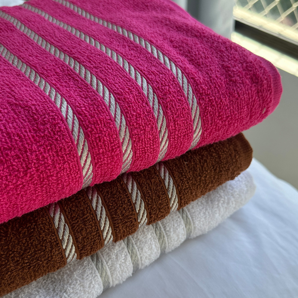 TOALHA DE ROSTO 100% ALGODÃO COM LISTRAS DECORATIVAS - PREÇO DIRETO DE FÁBRICA Experimente a qualidade superior de toalhas fabricadas com 100% algodão puro, com um diferencial que faz toda a diferença: elegantes listras decorativas em barra dourada ou prateada. Perfeitas para uso doméstico, salões de beleza, barbearias, clínicas estéticas e academias. Envio Feito todos os dias, exceto sábado, domingo e feriado. Preço de Fábrica! Selecione a quantidade de toalhas que você deseja, pois vai a partir de 2 unidades até 8. Peso: Aproximadamente 100 Gramas cada Tam: 40 x 60 Cm As cores vão sempre sortidas, ou você escolher uma cor apenas. A toalha de Rosto pode ir com a barra prateada ou dourada, dependendo de como está nosso estoque. Recomendações de uso: Sempre lave toalhas antes do primeiro uso, pois passam por processo de engomagem e podem contar com uma resina que diminui a absorção no primeiro uso; Evite misturar produtos com cores mais escuras junto com peças de cores claras. É normal o algodão soltar plumas da parte mais superficial e transferir pigmentação para peças mais claras; Ao notar qualquer defeito que comprometa o valor do produto, não lave nem o utilize, pois assim podemos receber, averiguar o defeito e lhe garantir o direito a troca ou devolução; Devido a variações no processo de fabricação, pode apresentar variações para mais ou para menos nas medidas finais do produto de até 3 cm. Qualquer dúvida nos chame no chat, estaremos a disposição! PERGUNTAS FREQUENTES 1. Posso escolher as cores das toalhas? Sim! Escolha cores sortidas (variedade aleatória) ou cor única específica para coordenar com sua decoração. 2. A barra é preta ou prateada? Depende do estoque disponível no momento do envio. Ambas possuem o mesmo acabamento elegante. 3. Quantas toalhas vêm no kit? Você escolhe a quantidade: de 2 até 8 unidades conforme necessidade. 4. São adequadas para uso profissional? Sim! Com 100g de peso, são mais robustas que toalhas de salão básicas (70-80g). 5. Por que lavar antes do primeiro uso? A engomagem industrial deixa resina que reduz absorção inicial. Lavar elimina essa camada e libera capacidade total do algodão. 6. As medidas são exatas? Pode haver variação de até 3 cm devido ao processo de confecção têxtil, o que é normal em produtos de algodão. 7. Qual a diferença para toalhas de salão comum? Nossas toalhas pesam 100g (versus 70-80g padrão salão), oferecendo corpo mais robusto, durabilidade maior e listras decorativas exclusivas. Garanta agora suas toalhas de rosto 100% algodão com listras decorativas! Qualidade premium a preço de fábrica!