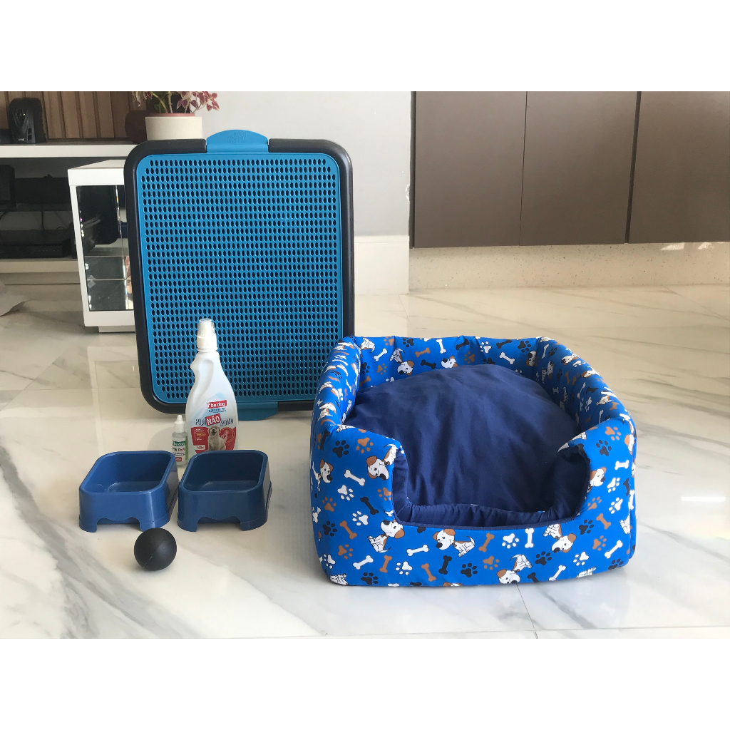 Kit Toca 3 em 1 Estampada --CORES E ESTAMPAS SÃO ESCOLHIDAS ALEATORIAMENTE DE ACORDO COM O GENEREO MACHO E FEMEA-- CONTÉM: - 1 Toca 3 em 1; - 1 Sanitário; - 2 ComedouroS - 1 Xixi Sim/Não; - 1 Bola Tamanhos da Cama (quadrada): P- 38x38cm M- 43x43cm G- 48x48cm GG- 60x60cm Tamanho do Sanitário: 55x41 -Tamanho do Comedouro: P- 12x10 cm - 350ml M- 15x12 cm - 650ml G e GG- 17x14 cm- 1000ml