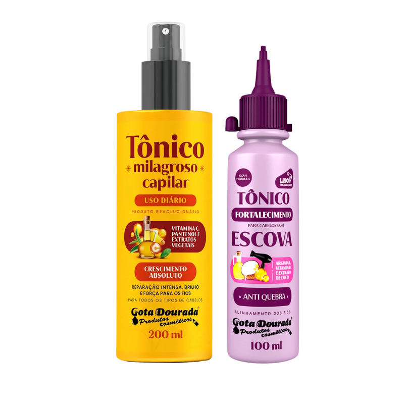 Kit Tônico Escova + Tônico Milagroso Gota Dourada