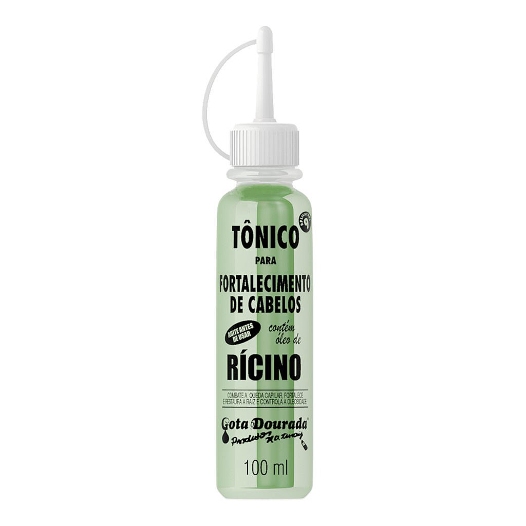 Tônico Capilar Gota Dourada Fortalecimento dos Cabelos - Kit C/4 Unidades ESTE KIT CONTÉM: - Tônico de Alho - Tônico de Rícino - Tônico de Biotina - Tônico Hialurônico O tônico se torna um poderoso aliado para fortalecer toda a extensão dos cabelos, ao mesmo tempo em que combate a queda capilar, restaura a estrutura da raiz e controla a oleosidade em excesso, para que os fios possam se desenvolver de maneira verdadeiramente saudável! Modo de uso: Aplique o produto diretamente no couro cabeludo, seguindo sempre a quantidade de aplicação que está descrita no tubo. Após isso, massageie com delicadeza, utilizando sempre a pontinha dos dedos para não machucar o couro cabeludo. Deixe o tônico agir por um período de 2 horas. Depois disso, é só lavar os cabelos.