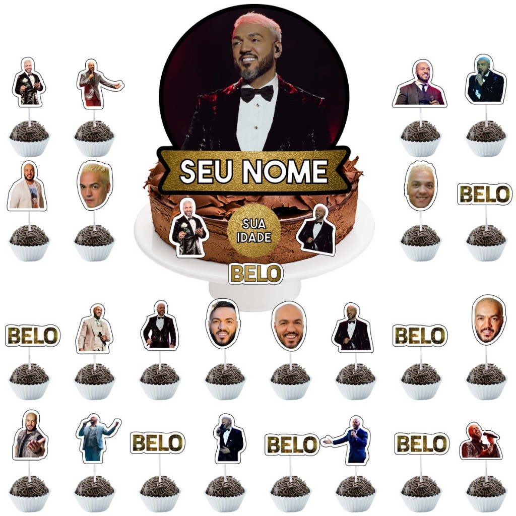 Kit Topo de Bolo Cantor Belo e Toppers de Docinhos Decoração Festa Pagode