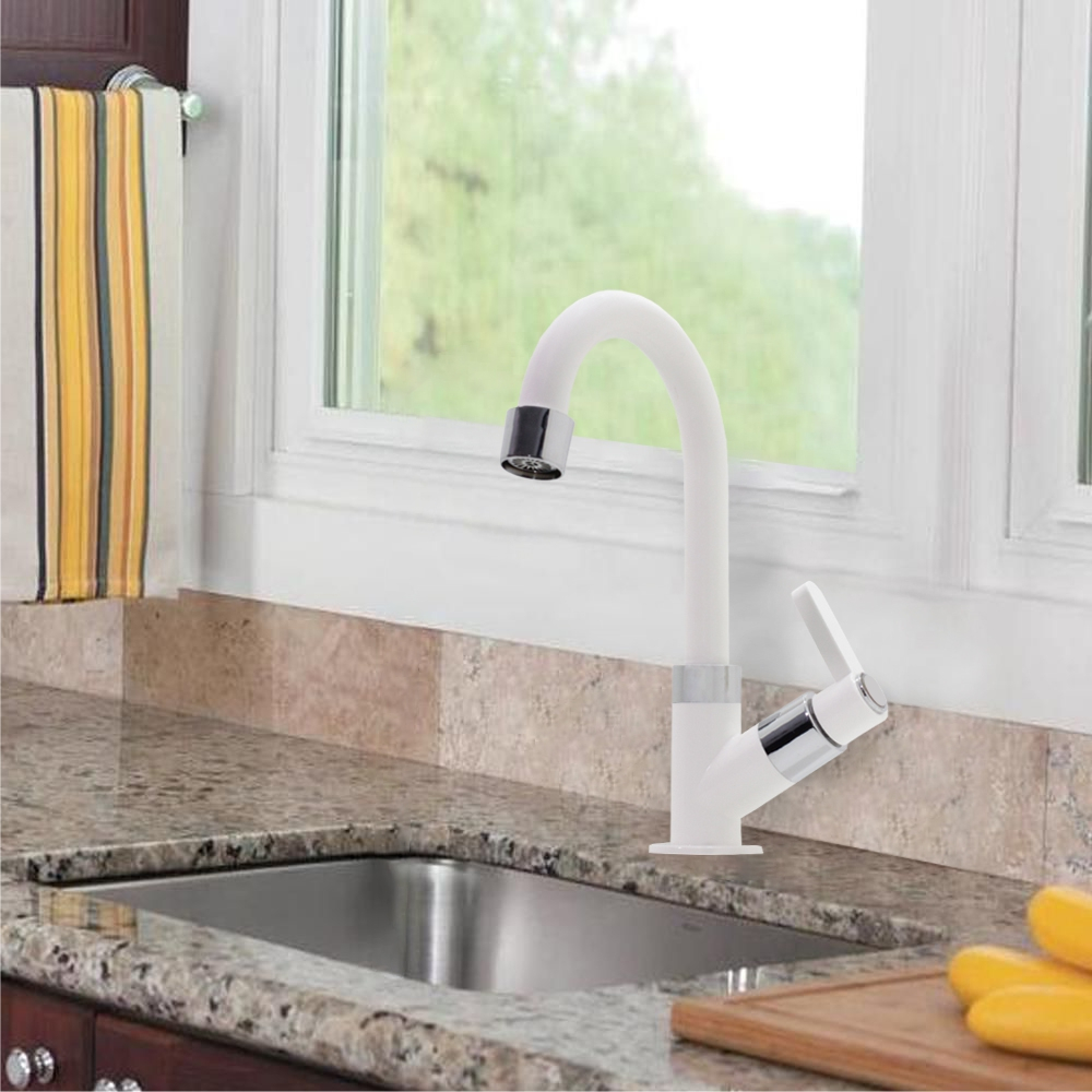 Kit Torneira de Banheiro Lavatório Luxo Abs + Valvula abs branca + Engate PVC 60 cm + Sifão Branco