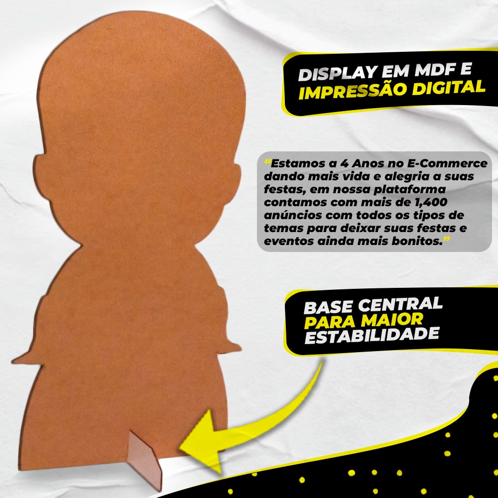 DESCRIÇÃO DO PRODUTO CONTEÚDO DO KIT: 02 TOTENS DISPLAY EM MDF PARA O CHÃO NA MEDIDA DE 60CM 06 TOTENS DISPLAY EM MDF PARA MESA NA MEDIDA DE 21CM (ACOMPANHA PEZINHO DE ENCAIXE PARA FICAR EM PÉ) OS DISPLAYS SÃO IMPRESSOS EM VINIL EM ALTA DEFINIÇÃO, REALÇANDO TODOS OS DETALHES. SÃO APLICADOS EM MDF 3MM E RECORTADOS A MAQUINA LASER COM ALTA PRECISÃO SEM DEIXAR BORDA BRANCA.