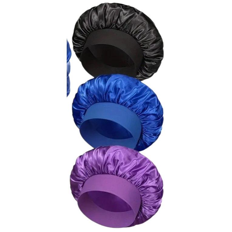 Kit Touca com Cetim com Faixa + Modelador de cachos com 2 xuxinhas de cetim e 2 Toucas Nero