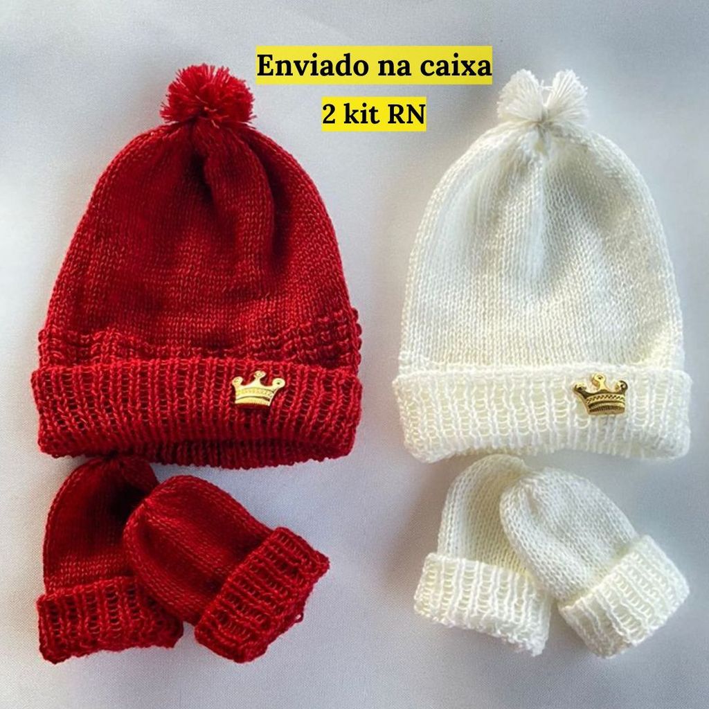 kit Touca e Luva Bebe Recém Nascido Saída De Maternidade Menino Menina Trico Feminina Masculina