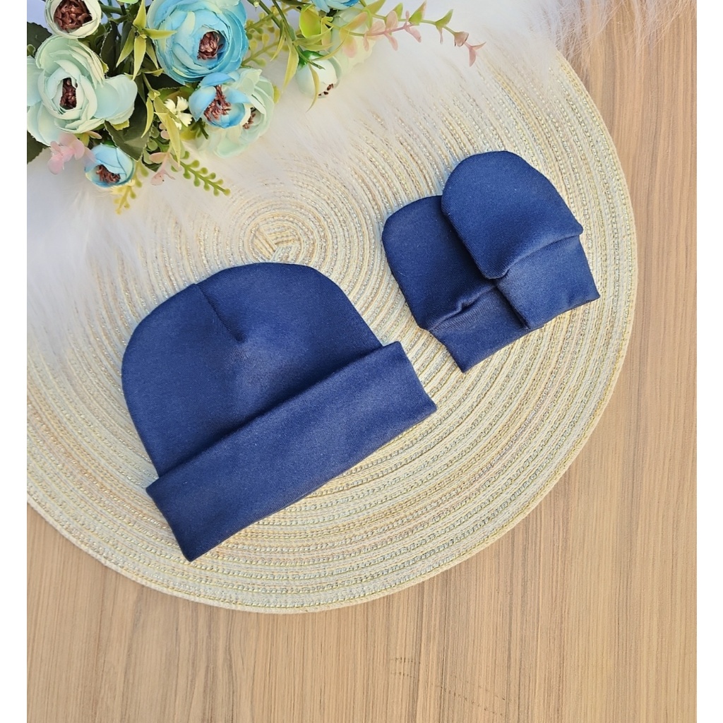 Kit Touca e Luva Para Bebê Recém Nascido 100% Algodão Antialérgico Maternidade Enxoval Gestante