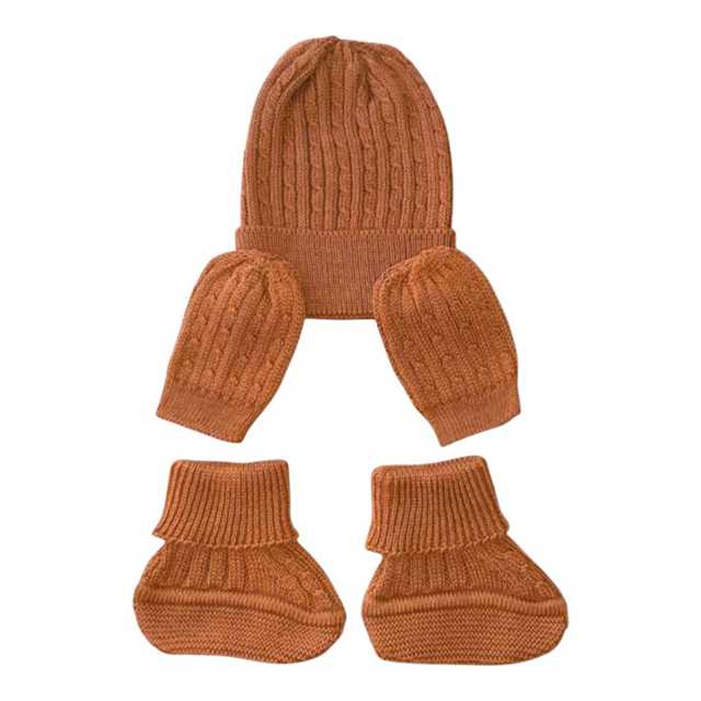 Kit touca luva e sapatinho para bebês de 0 a 3 meses em tricô.