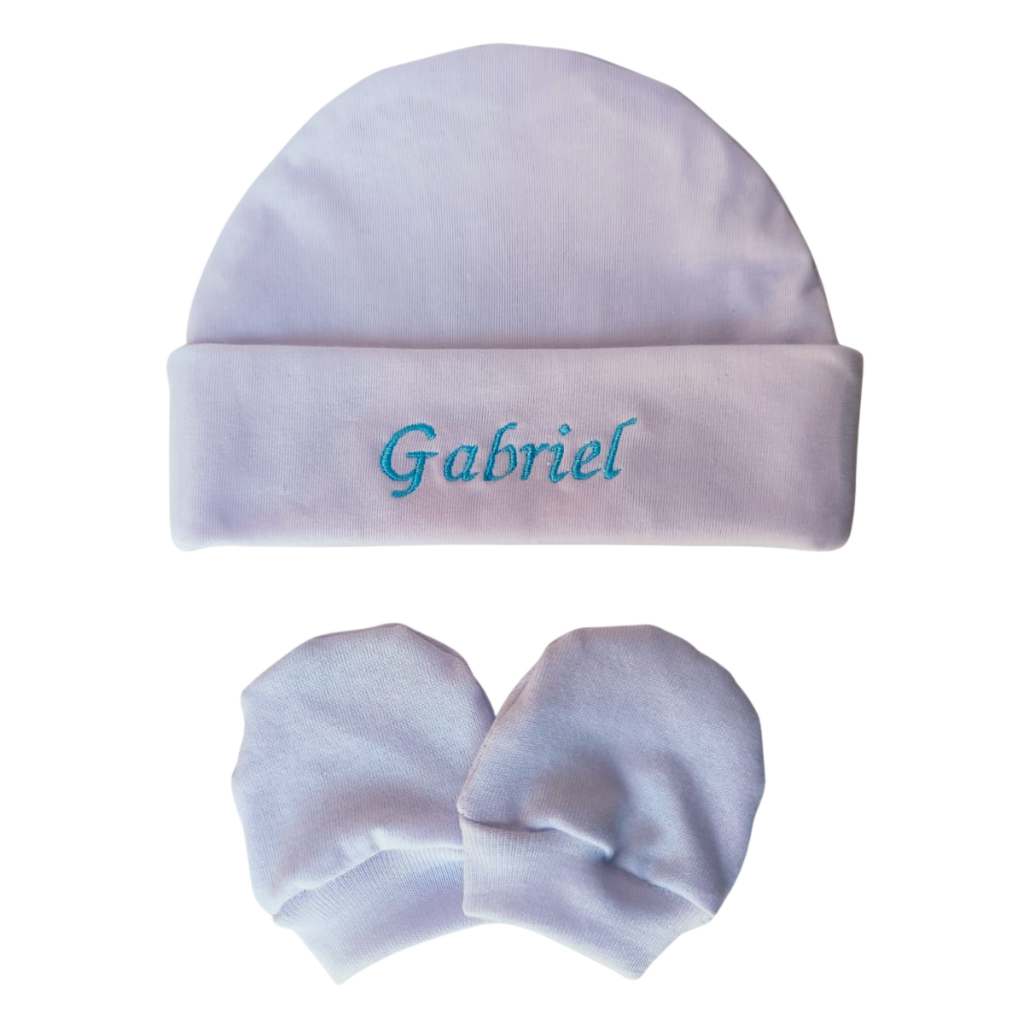 Kit Touquinha Personalizada e Luvas RN Saída Maternidade Para Bebê Bordado