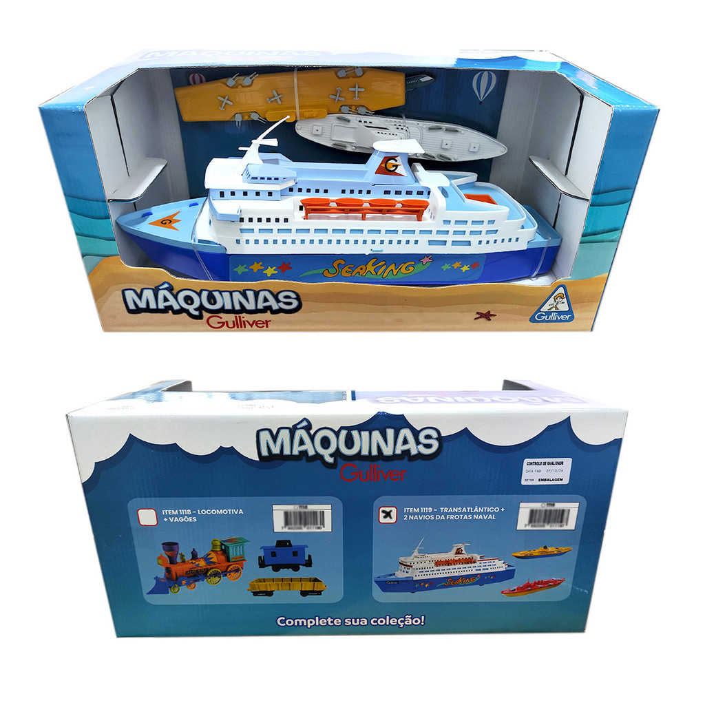 Kit Transatlântico Com 2 Navios Na Caixa Frota Naval Gulliver Brinquedo Decoração Infantil
