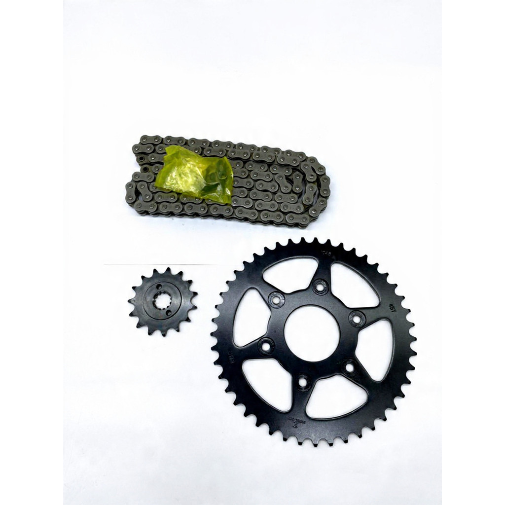 Produto de alta qualidade, desenvolvido para oferecer máxima durabilidade, resistência e desempenho na sua motocicleta. Ideal para quem busca trocas mais suaves e longa vida útil. Composição do kit: corrente KMC Gold com retentor, pinhão e coroa. Especificações do kit: corrente 520 com 120 elos, coroa 45 dentes e pinhão 15 dentes. Compatibilidade: Bajaj Dominar 400. A corrente com retentor oferece maior durabilidade, possui tratamento especial contra corrosão, alta resistência ao desgaste e proporciona uma transmissão silenciosa e eficiente. Recomenda-se que a instalação seja feita por um profissional qualificado, garantindo o desempenho ideal e a segurança da motocicleta. Produto novo, de excelente qualidade, conforme as fotos do anúncio.