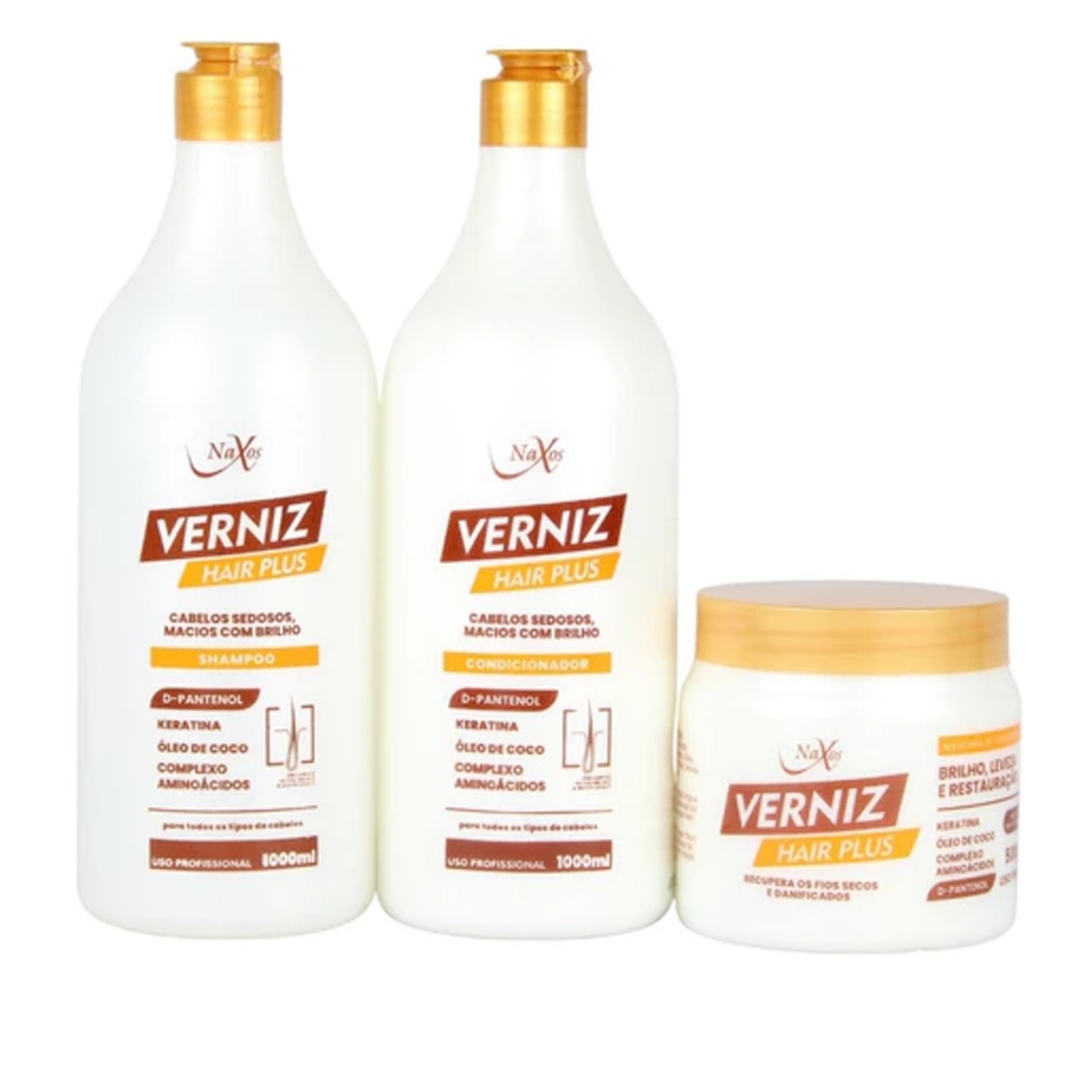 Kit Tratamento Capilar Banho Verniz Shampo 1 Litro, Condicionador 1 Litro e Máscara 500g Naxos