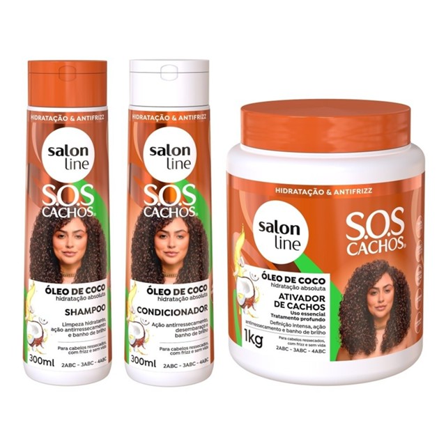 O Kit Tratamento Profundo conta com 1 Shampoo, 1 Condicionador e 1 Ativador de Cachos SOS Cachos Coco. Resgatam a saúde e a hidratação dos cabelos crespos e cacheados. Sua fórmula age, principalmente, na limpeza e na recuperação estrutural dos fios, tornando-os mais saudáveis, controlados e fortes. <>INDICAÇÕES$& Para quais tipos de cabelo? Cabelos cacheados, crespos. Qual a indicação? Cabelos ressecados e quebradiços. Pode usar a partir de quantos anos? A partir de 12 anos. <>ATIVOS$& Quais os principais ativos? Os produtos possuem os seguintes ativos: Óleo de coco: rico em vitaminas e ácidos graxos, hidrata e nutre, além de fortalecer os fios, proporcionando brilho e maciez. Manteiga de coco: possui ácidos graxos, ideal para restaurar o cabelo danificado. Além disso, é um excelente hidratante natural, com extrema capacidade umectante, que proporciona aos fios força e brilho. <>MODO DE USO$& Qual a melhor forma de usar? Shampoo SOS.Cachos Coco Tratamento Profundo Aplique o Shampoo uniformemente no cabelo molhado. Massageie suavemente até formar espuma. Enxágue. Condicionador SOS Cachos Coco Tratamento Profundo Após usar o shampoo, aplique o Condicionador Salon Line uniformemente nos cabelos molhados. Massageie e deixe agir de 1 a 3 minutos. Ativador de Cachos Óleo de Coco 1 - Com os cabelos limpos e úmidos, aplique o ativador de cachos mecha a mecha, uniformemente, no comprimento e pontas. Desembarace os fios com um pente de dentes largos e, em seguida, amasse-os iniciando o movimento das pontas até a raíz. Repita o movimento quantas vezes forem necessárias. NÃO ENXÁGUE 2 - Após a aplicação do shampoo, com os cabelos limpos e úmidos, aplique o ativador de cachos mecha a mecha, massageando do comprimento até as pontas. Desembarace os fios com um pente de dentes largos e, em seguida, amasse-os iniciando o movimento das pontas até a raíz. NÃO ENXÁGUE. <>CARACTERÍSTICAS$& É produto vegano? Todos os produtos são veganos. É liberado? Apenas o Condicionador é liberado.