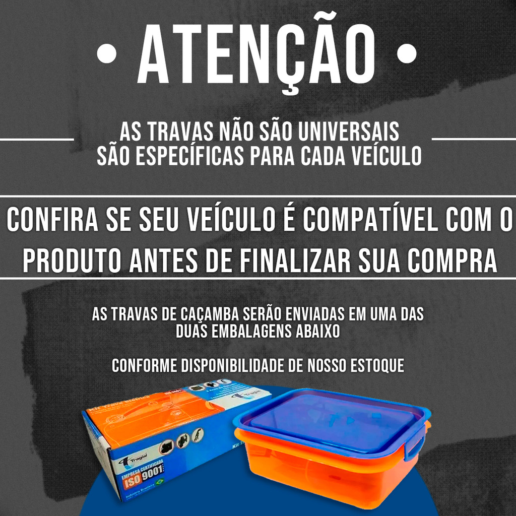 Kit Trava Elétrica da Tampa Traseira Caçamba Anti Furto Anti-Furto Tranca Fechadura compatível com VW Volkswagen Amarok Sem Cilindro de Chave 2010 2011 2012 2013 2014 2015 2016 2017 2018 2019 2020 2021 2022 2023 • ATENÇÃO Antes de efetuar a compra verifique se seu veículo é compatível com o modelo anunciado. VW Amarok 2010-2023. Proteja seu veículo contra furtos com esta trava elétrica de segurança, ideal para quem busca praticidade e proteção no dia a dia. Especificações Técnicas: • Modelo dedicado para o veículo (específico para este modelo) • Tensão de trabalho: 12v • Não necessita de adaptações para instalação • Ao acionar a trava elétrica ou alarme do veículo, a tampa traseira irá travar/destravar Conteúdo da embalagem: • Trava elétrica específica para veículo • Chicote • Manual de instalações • Kit instalação (parafusos e fixações) Ficou alguma dúvida? Esclareça sua dúvida no campo de perguntas! Ficamos à disposição para esclarecer qualquer dúvida que tenha surgido, faça sua pergunta no campo de perguntas, vamos lhe atender com o maior prazer!