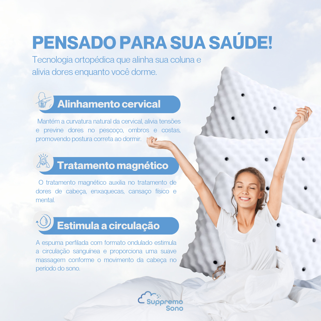 KIT Travesseiro Magnético ALTO ORTOPEDICO + FRONHA DE CETIM Massageador Confortável Infravermelho Terapeutico Luxo
