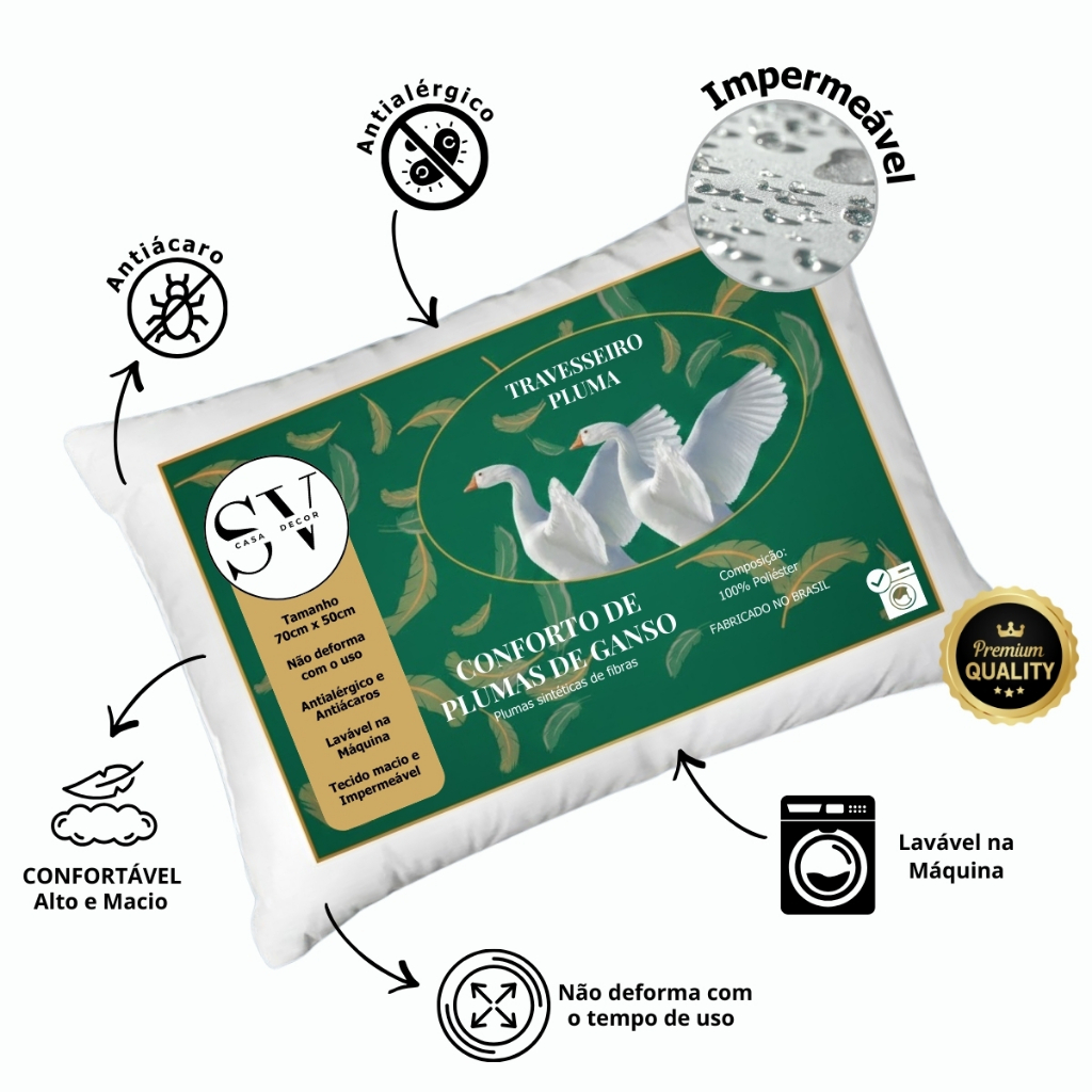 *Compra 100% segura* Envio imediato! *Produto ANTIALÉRGICO, MACIO, DURÁVEL e LAVÁVEL* Se você se preocupa com a PROTEÇÃO DE SUA FAMÍLIA, eu tenho certeza que esse travesseiro irá lhe atender Fabricação própria com produtos de qualidade premium! *PEDIDOS ACIMA DE 8 UNIDADES FAZER COMPRAS SEPARADAS* Especificações técnicas: - Produto LAVÁVEL, ANTIALÉRGICO e MACIO; - Enchimento 100% Pluma de Ganso Sintética (fibra siliconada); - Tecido externo: Percal Liso; - Design e acabamento impecável; - Material durável e de alta qualidade; Fabricação própria com produtos de qualidade premium! Dúvidas? Nos envia uma mensagem que a equipe te responde o quanto antes! *SV Home Decor*