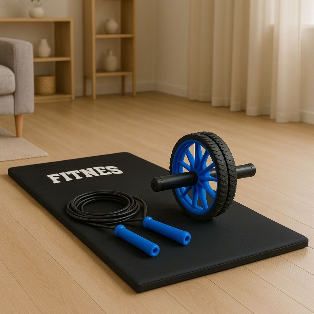 Kit Treino Funcional Colchonete Roda Abdominal Corda de Pular CrossFit Corpo Saudável Treino Seguro em Casa