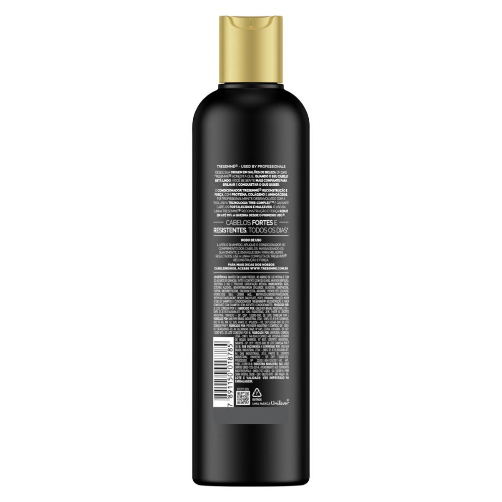 O Kit Contém: 1 Shampoo TRESemmé Reconstrução e Força 400ml. 1 Condicionador TRESemmé Reconstrução e Força 400ml. Shampoo TRESemmé Reconstrução e Força 400ml. • O novo Shampoo TRESemmé Reconstrução e Força reduz 99% da quebra dos fios desde o primeiro uso, deixando seus cabelos mais fortes e resistentes. • Foi profissionalmente desenvolvido com Fórmula Micelar que, por meio de moléculas inteligentes, remove as impurezas de maneira delicada e eficaz, sem danificar os fios. • Sua fórmula é enriquecida com Proteína, Colágeno e Aminoácidos que compõe a estrutura natural do cabelo. • A linha TRESemmé Reconstrução e Força é ideal para quem deseja recuperar a força dos fios que foram danificados por processos químicos. • O Shampoo TRESemmé Reconstrução e Força pode ser usado todos os dias e recomenda-se o uso da linha completa para atingir melhores resultados. • Indicado para cabelos danificados. Condicionador TRESemmé Reconstrução e Força 400ml. • O novo Condicionador TRESemmé Reconstrução e Força reduz 99% da quebra dos fios desde o primeiro uso, deixando seus cabelos mais fortes e resistentes. • Foi profissionalmente desenvolvido com a exclusiva tecnologia TRES-ComplexTM que desembaraça os fios facilmente e ajuda a controlar o frizz. • Sua fórmula é enriquecida com Proteína, Colágeno e Aminoácidos que compõe a estrutura natural do cabelo. • A linha TRESemmé Reconstrução e Força é ideal para quem deseja reconstruir a força dos fios que foram danificados por processos químicos. • O Condicionador TRESemmé Reconstrução e Força pode ser usado todos os dias e recomenda-se o uso da linha completa para atingir melhores resultados. • Indicado para cabelos danificados. * Compre Produtos TRESemmé.
