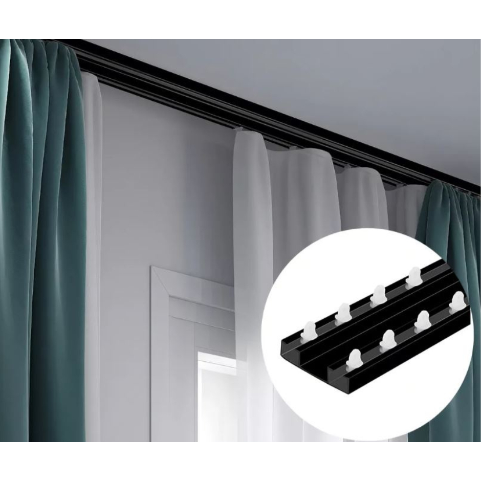 Kit Trilho Suíço Duplo Max Cortina Alumínio Silencioso Resistente Preto Varão Vários tamanhos