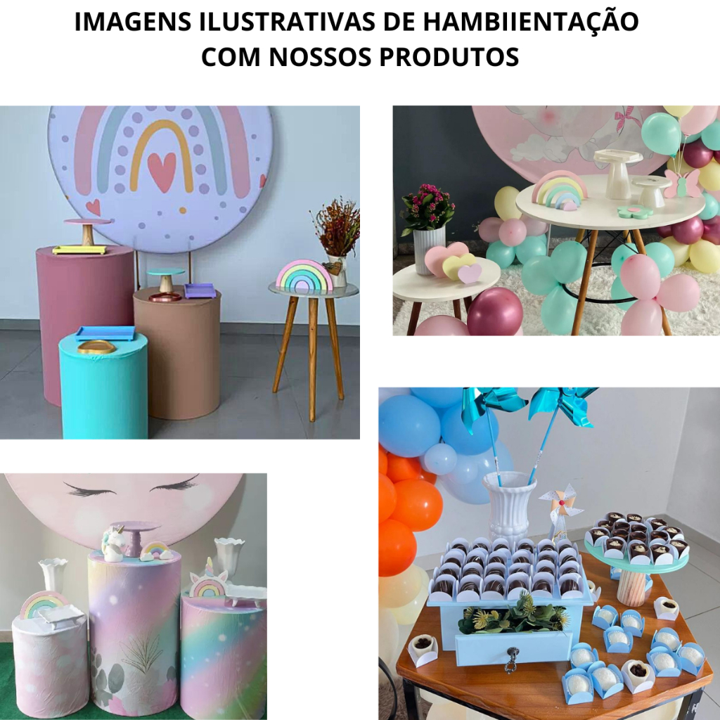 Kit Trio Boleiras Cogumelo Suporte Doce Em Mdf Cru Para Festa De Aniversario diversas cores