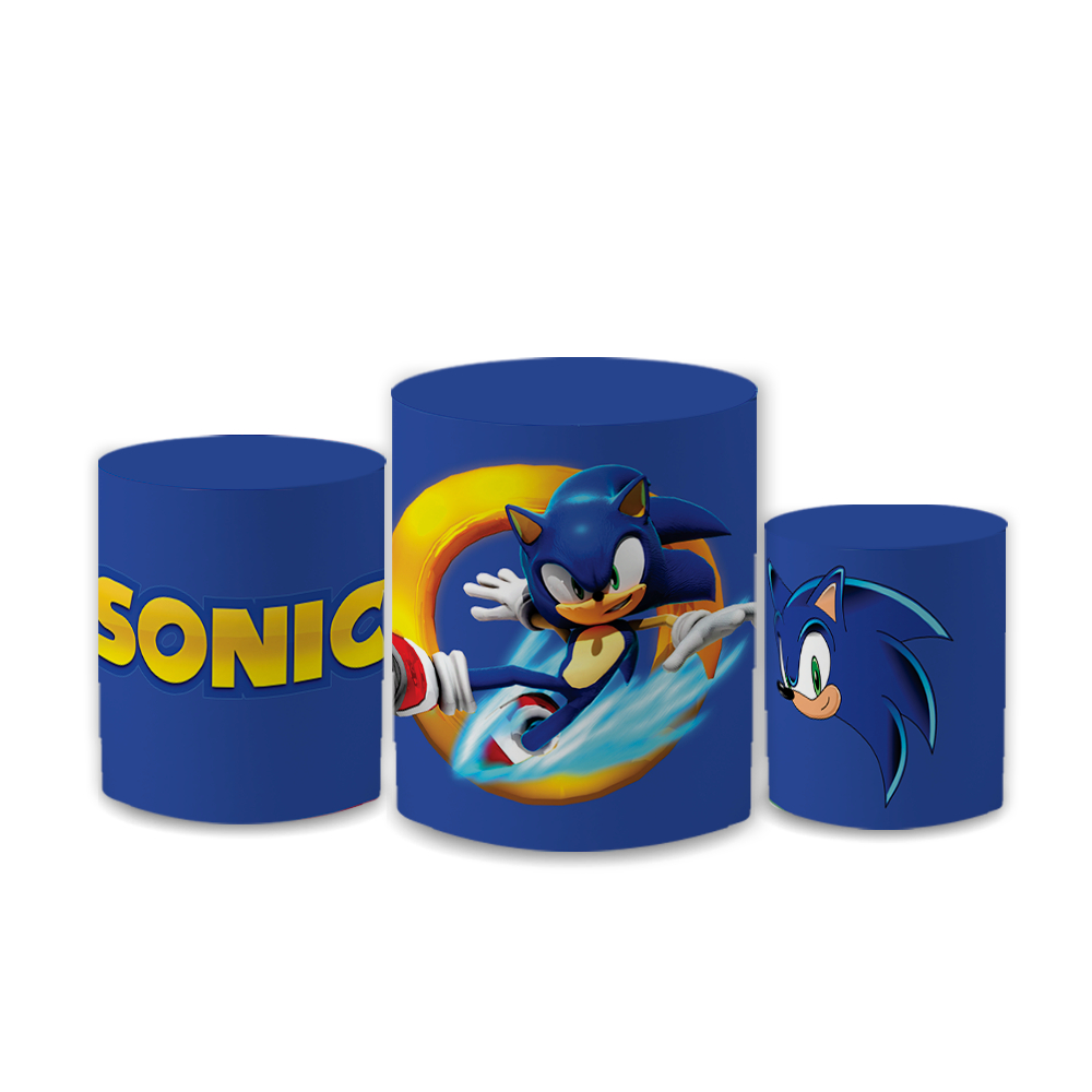 Kit Trio Capa De Cilindro S0nic Em Tecido Para Decoração Festa Lançamento