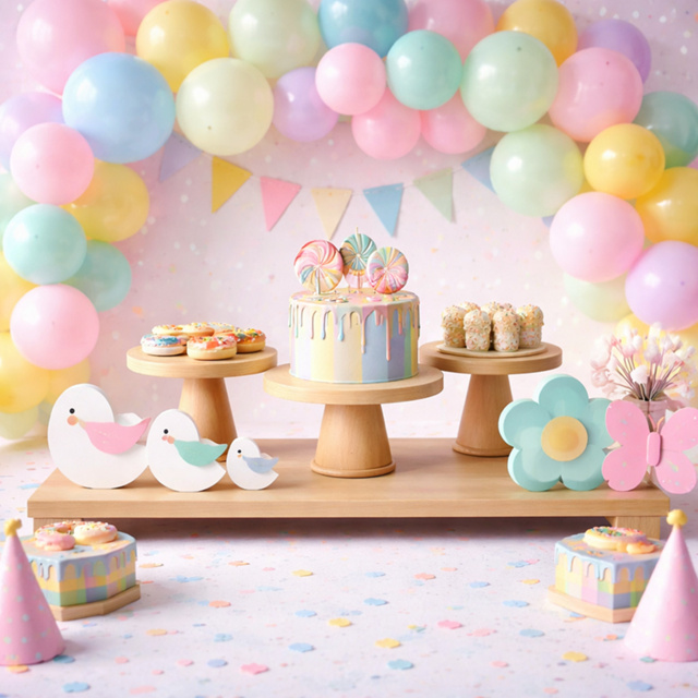 Kit Trio De Boleiras Cogumelo Com 2 Bandejas Em Mdf Cru Suporte Bolo Docinhos Decoração Mesa Festa