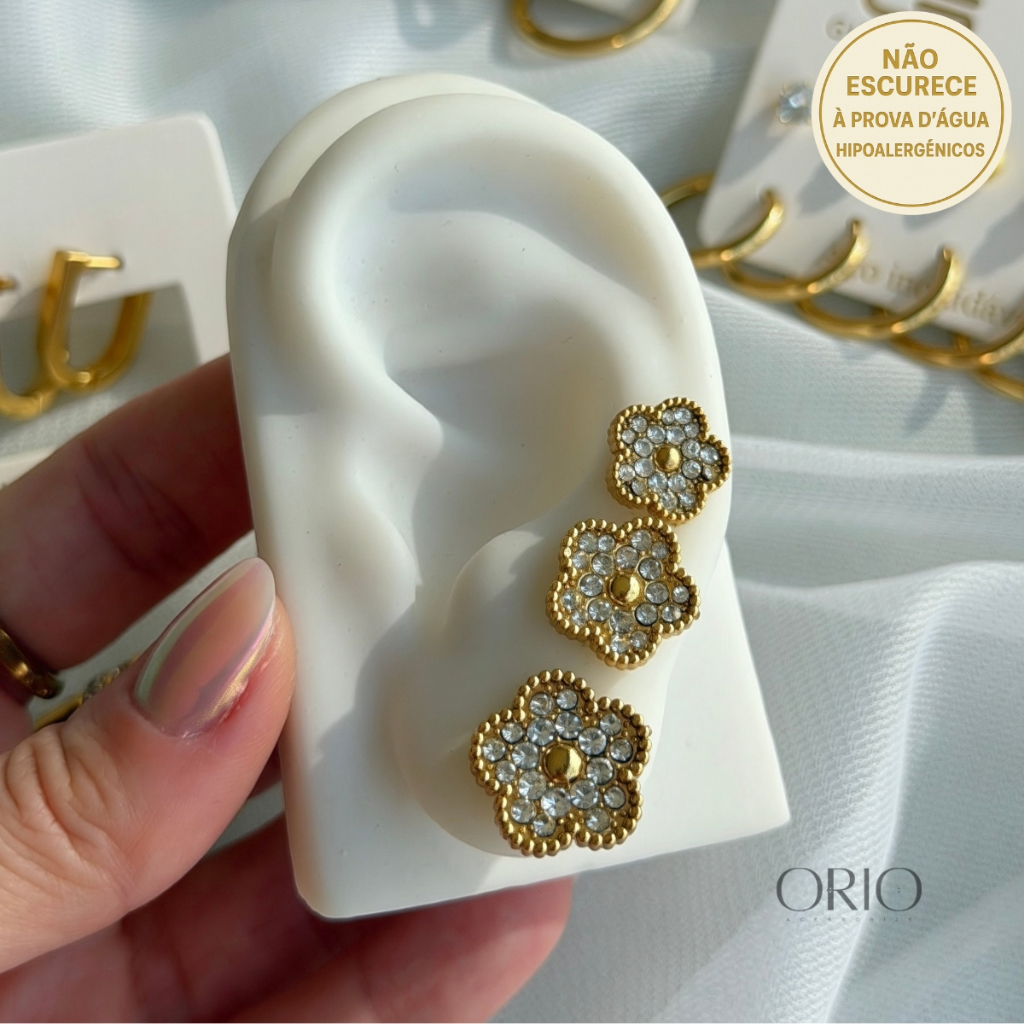 Kit trio de brincos AÇO INOXIDÁVEL / HIPOALERGÊNICOS / A PROVA D’água - Não escure & Não oxida!