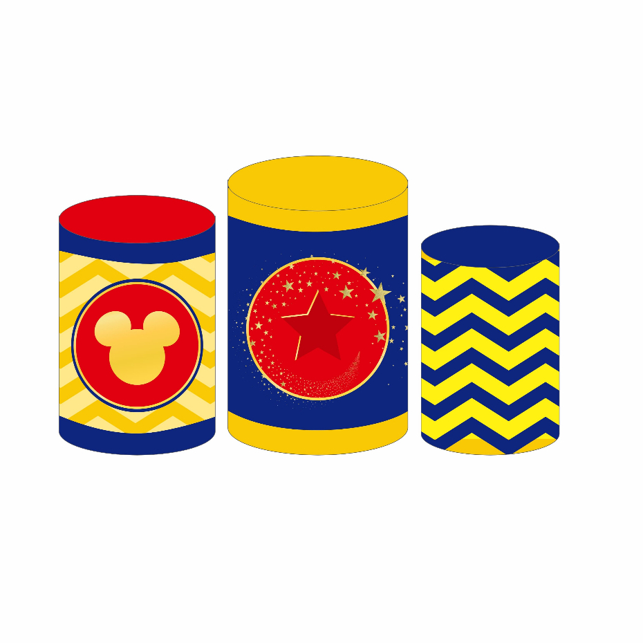 Kit Trio de Capas Cilindro Para Decoração de Festa Infantil Mickey Mouse Várias Estampas