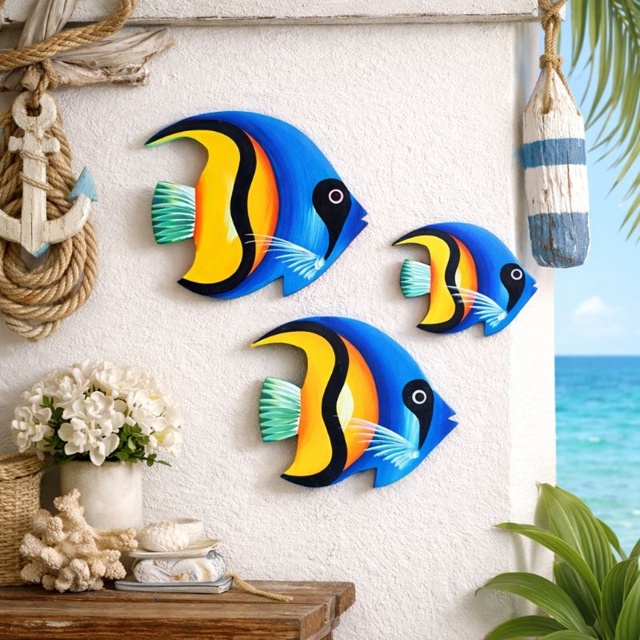 Kit Trio de Peixes enfeite de parede em Mdf animais marinhos linha náutica decoração casa de praia