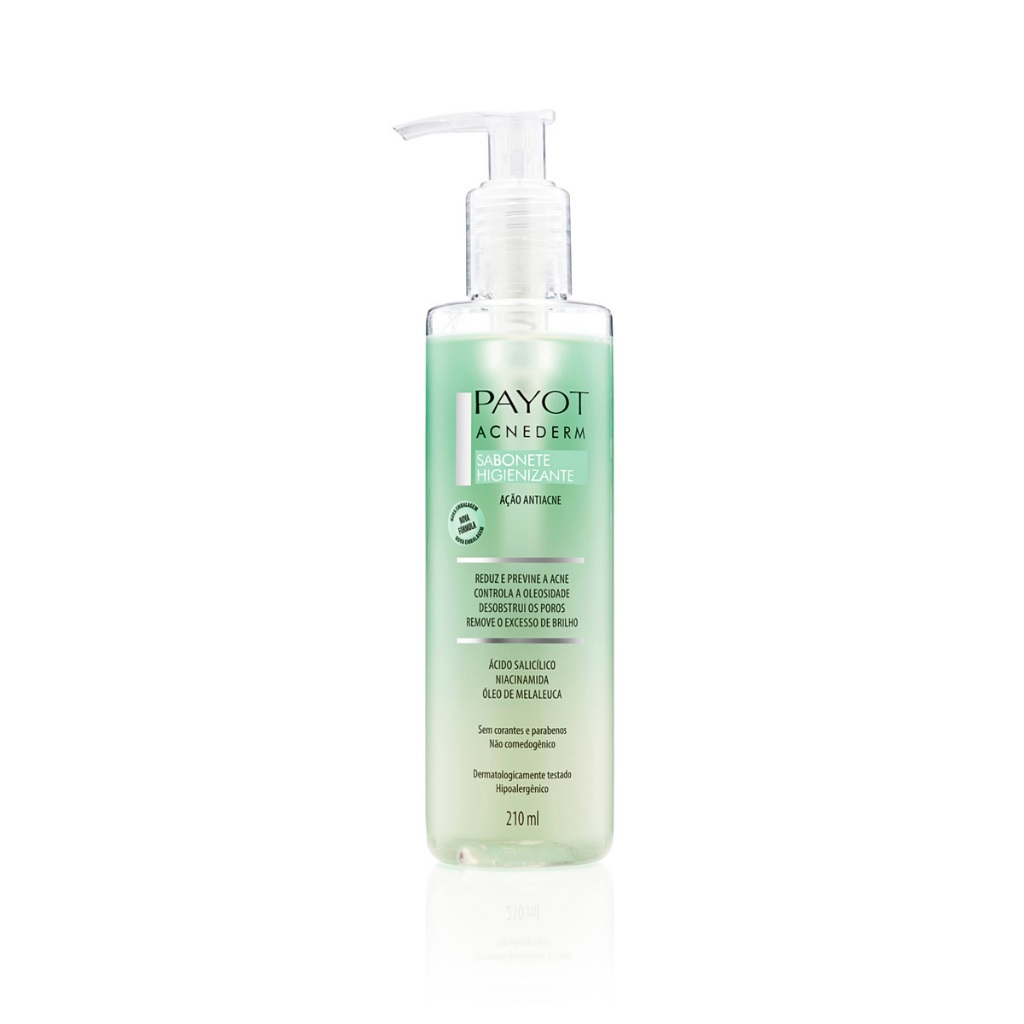 Kit Trio Sabonetes Payot, contém: 1- Sabonete líquido detox vitamina c payot 220mlAção ou benefício: proporciona higienização equilibrada, desintoxicante, trazendo luminosidade, suavidade, maciez e refrescância. 1- Sabonete Higienizante Acnederm Payot O Sabonete Higienizante Acnederm Payot, foi formulado com Ácido Salicílico, Niacinamida e Óleo de Melaleuca, que conferem limpeza profunda eliminando as impurezas, sem irritar ou ressecar a pele. Controla a oleosidade excessiva, deixando a pele limpa e hidratada ao longo do dia. Desobstrui os poros. Diminui a vermelhidão e o inchaço causado pela acne. Seu uso contínuo ajuda na prevenção de formação de cravos e espinhas. Pele macia e com viço natural. Sensação refrescante. Livre de ingredientes de origem animal e não testado em animais. Sem Corantes e Parabenos. Não Comedogênico. Dermatologicamente Testado. Hipoalergênico. Vegano. Livre de ingredientes de origem animal e não testado em animais. 1-Sabonete Facial Retinol Payot O Sabonete Facial Retinol Payot limpa profundamente sem ressecar a pele. Sua fórmula revitalizante minimiza aoleosidade. Mantém a pele macia e iluminada ao longo do dia. A combinação de RETINOL VEGETAL, NIACINAMIDA E VITAMINA E ajuda a hidratar, proteger e promover a aparência de uma pele renovada. Possui uma textura leve e espuma cremosa. Produto livre de parabenos e corantes. Utilizamos um ativo de origem vegetal (Phyto-Retinol), que não possui os efeitos adversos do retinol tradicional. Sem corantes e parabenos. Hipoalergênico. Dermartologicamente testado. Produto Vegano. Não Testado em animais.