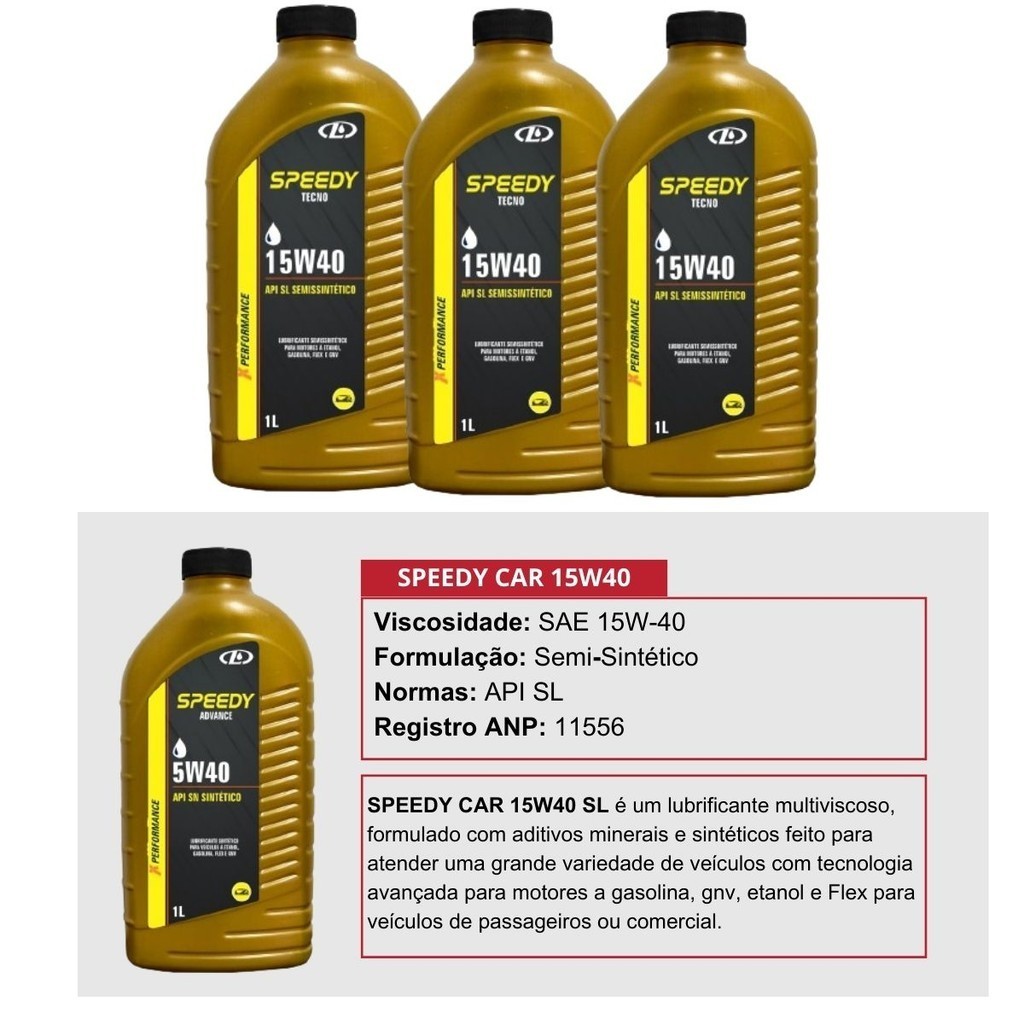 Kit Troca de Oleo 15W40 MAXX Lubri e Filtro de óleo - Fiat Linha Fire Compativel com toda linha Fire Palio, Palio Weekend, Siena, Idea, Strada, Fiorino Ano de fabricação: 2003, 2004, 2005, 2006, 2007, 2008, 2009, 2010, 2011, 2012 ÓLEO 15W40 COM O MELHOR CUSTO/BENEFÍCIO DO MERCADO *** REGISTRO ANP: 11556 *** Conteúdo: 03 Litros de óleo MAXX LUBRI 15W40 API SL 01 Filtro de óleo Tecfil - PSL55 Filtros tecfil 1ª linha, maior fabricante de filtros do continente A SPEEDY CAR oferece lubrificantes de última geração, seguindo as inovações da indústria automobilística. O óleo 15W40 SPEEDY CAR é uma ótima opção para quem procura um óleo de alta performance com um excelente custo-benefício. Ele é formulado com ingredientes de alta qualidade e oferece uma excelente proteção para o motor, o que ajuda a prolongar sua vida útil e economizar combustível. Vantagens do óleo 15W40 Speedy Car: - Proteção superior contra o desgaste, corrosão e aquecimento; - Melhora a economia de combustível; - Prolonga a vida útil do motor; - Formulado com óleos de última geração; - Custo-benefício excelente; O Kit Troca De Óleo E Filtros é perfeito para manter o seu veículo em excelente estado de funcionamento. Compatível com o seu veículo, este kit inclui filtro de ar, filtro de combustível, óleo e filtro de óleo, tudo o que você precisa para uma troca completa. Os filtros garantem a qualidade do ar e do combustível que chegam ao motor, protegendo-o de impurezas e prolongando sua vida útil. Além disso, o óleo de alta qualidade 15w40 proporciona uma lubrificação eficiente, reduzindo o desgaste e melhorando o desempenho do motor. Este kit é ideal para quem busca praticidade e economia, pois inclui todos os itens necessários em um único pacote. Mantenha o seu veículo em perfeito estado, garantindo um funcionamento suave e uma maior durabilidade do motor. Garantia do vendedor 3 meses Se tiver alguma dúvida entre em contato conosco! Sua satisfação é nossa prioridade! ATENÇÃO: - Não nos responsabilizamos pelo mau uso ou instalação indevida do produto. - Recomendamos que a instalação seja realizada por um profissional especializado. - Algumas imagens ( fotos ) são meramente ilustrativas. VGFC DISTRIBUIDORA É UMA EMPRESA DO GRUPO ZT DIESEL QUE ATUA NO MERCADO DE REPARAÇÃO VEICULAR DESDE 1993!
