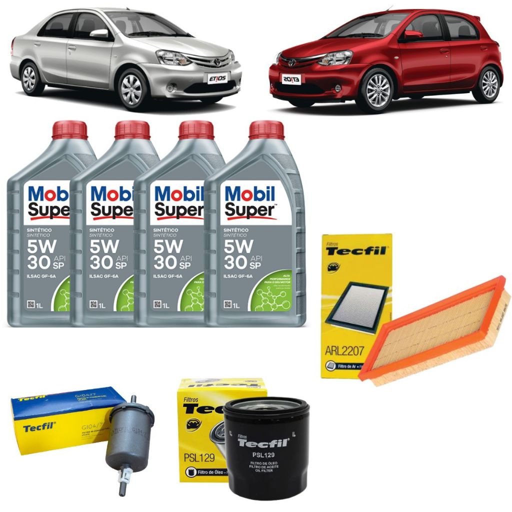 Kit Troca De Oleo E Filtros Etios Yaris 1.3 1.5 Flex 5w30 Mobil sintético revisão original Toyota