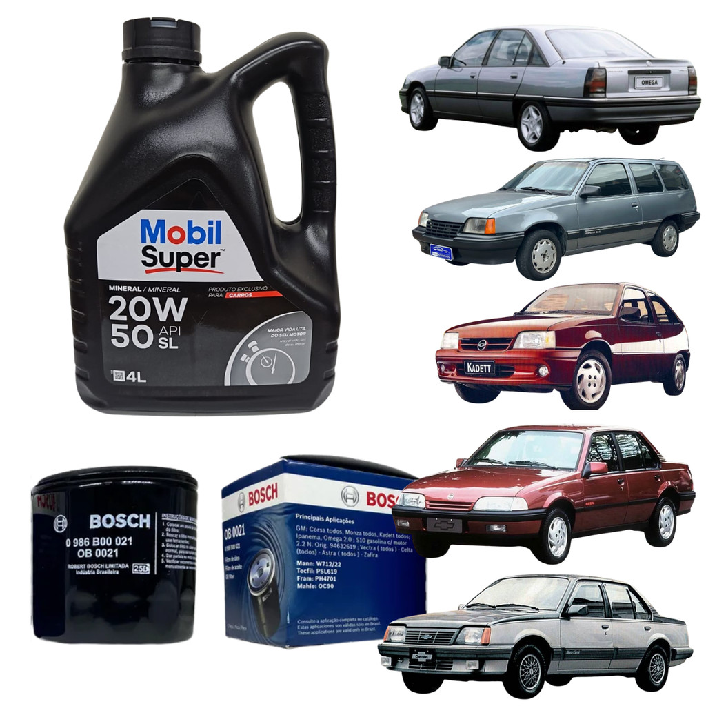 Kit Troca Óleo 20W50 Mobil Chevrolet Monza Omega Kadett Ipanema Motor 1.8 2.0 8v 4cc 1982 ate 1997