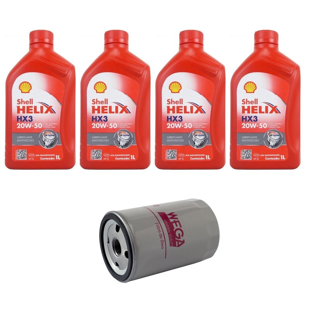 Kit troca de óleo contendo lubrificante Shell HX3 20w50 e filtro de lubrificante original Wega. APLICAÇÃO: VW - Golf G3 - 1.8 2.0 Gasolina - 1991/1997 *Verificar se o produto anunciado é igual o que está no seu veículo para evitar devoluções. ESPECIFICAÇÕES: API SL Mineral ITENS INCLUSOS: 01 - Filtro de óleo Blindado Wega 04 - Shell HX3 20w50
