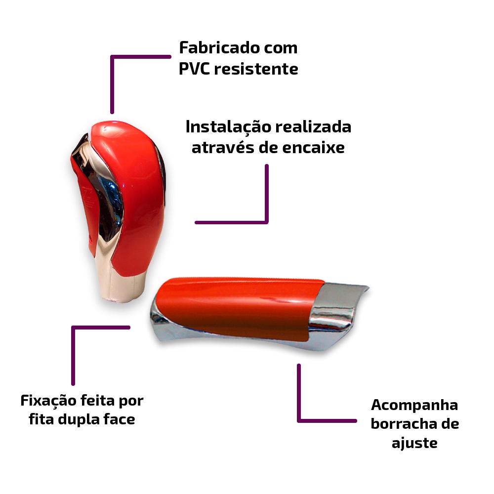 Jogo de Peças - Chrome Esportivo Shekparts Dê um visual moderno e esportivo ao seu carro! O Kit Chrome Esportivo Shekparts combina design, brilho e qualidade, deixando o interior do veículo com um toque único e sofisticado. ⚠️ Atenção Selecione a cor desejada na variação do anúncio antes de finalizar a compra. Conteúdo do Kit 01 Bola (manopla) de câmbio 01 Aplique para manopla do freio de mão 03 Apliques de pedaleiras (embreagem, freio e acelerador) 04 Pinos de válvula de pneu 🚘 Compatibilidade: Compatível com modelos sem anel limitador de ré. ⚠️ Atenção: veículos com anel limitador de ré não são compatíveis com a manopla de câmbio. 🔧 Especificações Técnicas Bola (Manopla) de Câmbio Acabamento cromado e colorido (sem adesivo de marchas) Material: plástico ABS de alta resistência Fixação com encaixe modelado de rosca Manopla de Freio de Mão Acabamento cromado com empunhadura colorida Material: plástico ABS Fixação com fita dupla face (inclusa) Pedaleiras Material: alumínio com borracha em PVC para melhor aderência Fixação com travas e parafusos Dimensões: Embreagem/Freio: 5,5 cm x 7 cm Acelerador: 5,5 cm x 12 cm Pinos de Válvula Material: plástico ABS cromado Alta durabilidade e ótimo acabamento Instalação das Pedaleiras 1️⃣ Modelo padrão: fixação por travas e parafusos, sem adaptações. 2️⃣ Modelo alternativo: caso as pedaleiras originais sejam maiores, é possível fazer a furação para adaptação. 💡 Dica Shekparts Dê um toque de sofisticação e esportividade ao seu veículo! O Kit Chrome Esportivo Shekparts é o diferencial que faltava — fácil de instalar e com acabamento premium. Informações Importantes Garantia: 90 dias Imagens de apoio meramente ilustrativas Valor referente ao kit completo Códigos de referência: AG202012 (21.001 - 21.002 - 21.003)