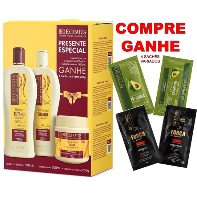 KIT TUTANO BIO EXTRATUS: SH 500ml+CONDIC 500ml+ 🎁BRINDE BANHO CREME 230g + 🎁BRINDE 4 SACHÊS VARIADOS🎁