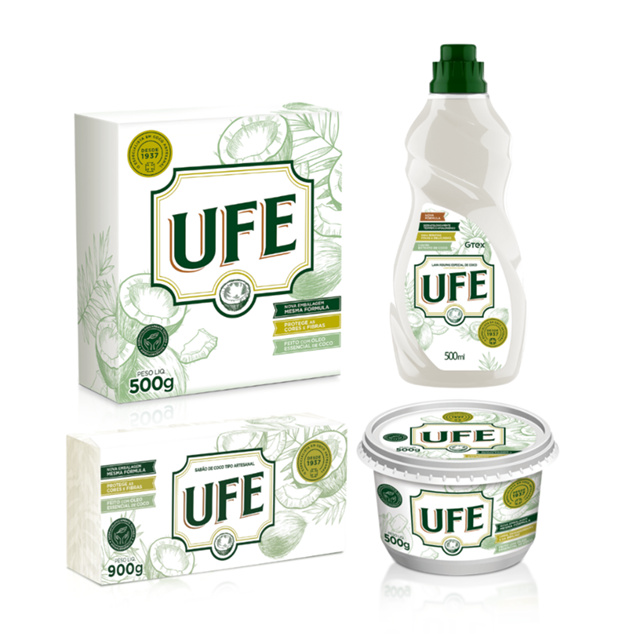 O Kit contém 1 unidade do Lava Roupas em Pó Coco UFE 500g 1 unidade do Sabão de Coco em Pasta UFE 500g. 1 unidade do Lava Roupas Líquido de Coco UFE 500ml. 1 unidade do Sabão de Coco em Barra UFE 5x180g Você compra o kit e economiza no valor final dos itens! Descrição Média 1.Vantagens O Lava Roupas em Pó Coco UFE possui puro óleo de coco e é natural de verdade. Tem alto poder de limpeza e cuidado com os tecidos mais delicados, lavando sem danificar as fibras dos tecidos de peças íntimas, roupas de bebê e até mesmo tecidos mais delicados como a seda. Os produtos em coco para tratamento de roupas da UFE são perfeitos para todas as peças de roupas que necessitam de mais neutralidade na hora da lavagem! O Sabão em Pasta Coco UFE é ideal para finalizar a limpeza de talheres, panelas e vidros, deixando um perfume natural de coco, e é um aliado indispensável para quem não abre mão do brilho na cozinha! Vantagens dos produtos UFE Coco: Feitos com puro óleo de coco Poderoso desengordurante para as louças; Matérias-primas selecionadas; Feito artesanalmente; Vegano; Dermatologicamente testado. 2.Características do produto (medidas/especificar quando houver variação do mesmo produto) E se você ainda tem dúvidas sobre produtos feitos à base de coco, dá uma olhada em todos esse benefícios: Eficácia a um preço justo; Preserva o tecido das roupas e deixa brilho na sua louça; Limpeza potencializada e sem agredir; Removedor de manchas; Cheiro suave (ideal para pessoas alérgicas a produtos com fortes odores). Produto biodegradável, testado dermatologicamente e feito com óleo de coco de verdade! Produto Hipoalergênico Testado dermatologicamente Alto poder de limpeza Para roupas finas e delicadas Não testado em animais Descrição Longa 5. Dica de Gê Conheça todos os produtos da UFE coco! Feitos com óleo de coco de verdade! Protegem os tecidos na hora da lavagem das roupas, e os produtos voltados para a limpeza geral, proporcionam eficácia para a remoção da sujeira e gordura, deixando sua louça, panelas, talheres e copos brilhando. E não agridem a sua pele!