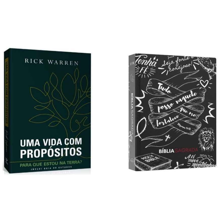 Uma Vida Com Propósitos: para Que Estou na Terra? - Com Guia de estudo Uma nova edição para uma nova geração! com duas novas particularidades: Um vídeo de introdução por Rick Warren para os capítulos 1-42 Dois novos capítulos sobre as barreiras mais comuns para viver uma vida com propósitos “Para que estou na terra? (Uma vida com propósitos, edição expandida) é um clássico em dezenas de idiomas que responde à grande questão da humanidade com sabedoria, graça e simplicidade. Apoiado em mais de 1.200 versículos bíblicos, o pastor Rick Warren nos aponta o real sentido da vida. Fiquei muito feliz em saber da nova edição, revisada e ampliada no ano em que celebramos 10 anos de sua primeira edição.” — Carlito Paes (Pastor sênior da PIB em São José dos Campos, SP). Bíblia Sagrada | NVI | Jovem Cristão | Capa Dura A Bíblia Sagrada - NVI (Nova Versão Internacional) é uma tradução moderna e confiável da Palavra de Deus. Traduzida em solo brasileiro por especialistas em Antigo e Novo Testamento, a NVI busca capturar fielmente a mensagem divina para o leitor contemporâneo, oferecendo uma tradução acessível e ao mesmo tempo fiel.