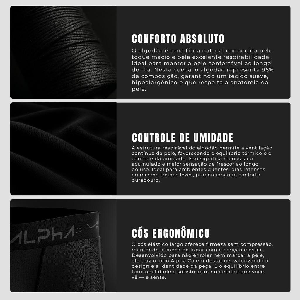 Resolva definitivamente a questão do básico com o kit 5 cuecas boxer masculinas e 3 meias Alpha, asolução completa para quem valoriza conforto diário e quer ter sempre uma peça limpa disponível sem preocupação. Produzidas com composição diferenciada onde as cuecas trazem 96% algodão + 4% elastano e as meias apresentam 69% algodão + 29% poliamida + 2% elastano. Essa combinação entrega maciez extrema, respirabilidade natural e ajuste perfeito que acompanha o corpo sem apertar. O algodão proporciona ventilação superior e absorção eficiente da umidade, mantendo você confortável e seco durante todo o dia. A cintura baixa oferece design moderno e discreto, perfeito para uso sob qualquer tipo de roupa. Benefícios do kit: - Kit econômico com 5 cuecas + 3 Meias: quantidade ideal para toda a semana e mais - Cintura baixa: ajuste moderno e discreto. - Respirabilidade natural: algodão que mantém a pele fresca. - Durabilidade garantida: resistente a lavagens frequentes. Invista em quantidade e qualidade com o kit que organiza seu guarda-roupa de uma vez.