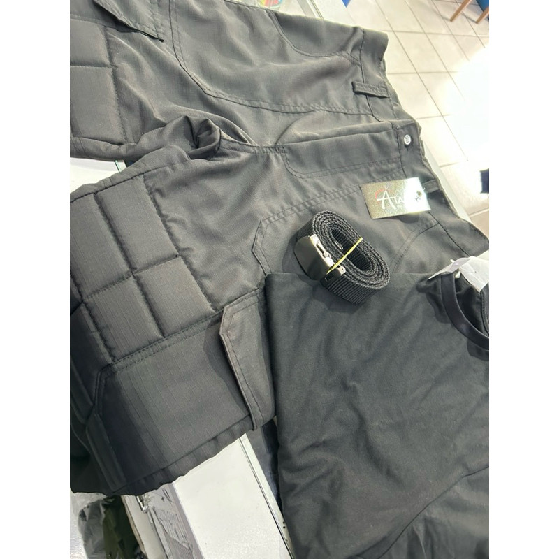 Kit Uniforme Tático Conjunto Segurança/Vigilantes Grandes Eventos O kit é uma forma de você comprar tudo que precisa de uma vez e com um valor mais acessível Vai incluso: Calça Tática Acolchoada Preta Fabricada em Poly Rip Stop com bombacha e 6 bolsos Cinto de passeio preto para calça Camisa Preta Lisa
