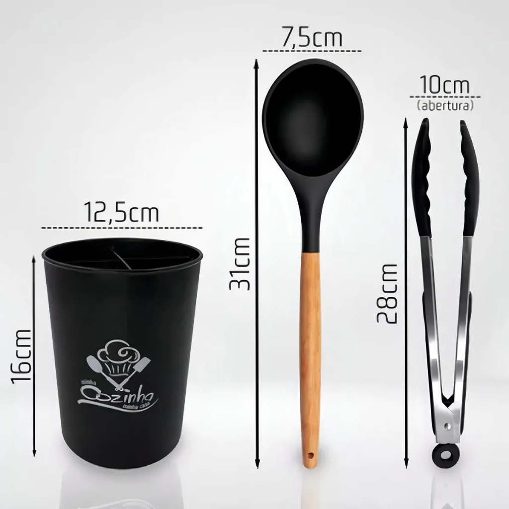 | Kit Utensílios de Silicone 7 Peças Cabo de Bambu + Porta Utensílios... este produto | R$ 37,99 | 16% | 5.0/5 | — |