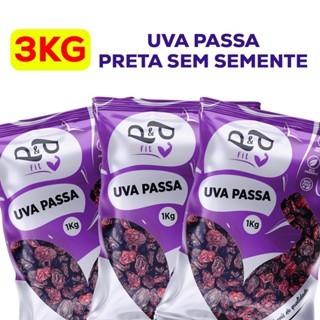 Uvas passa P&P sempre novas e fresquinhas! Uva Passa Importada da melhor Qualidade, sem semente. Descrição do produto: - Safra Nova (Produto produzido semanalmente, sempre fresco) - Enviado com ampla validade (Superior a 8 meses) - Kit contendo 3 pacotes de 1Kg - Peso Total: 3Kg Obrigado por comprarem nossos produtos! 😊