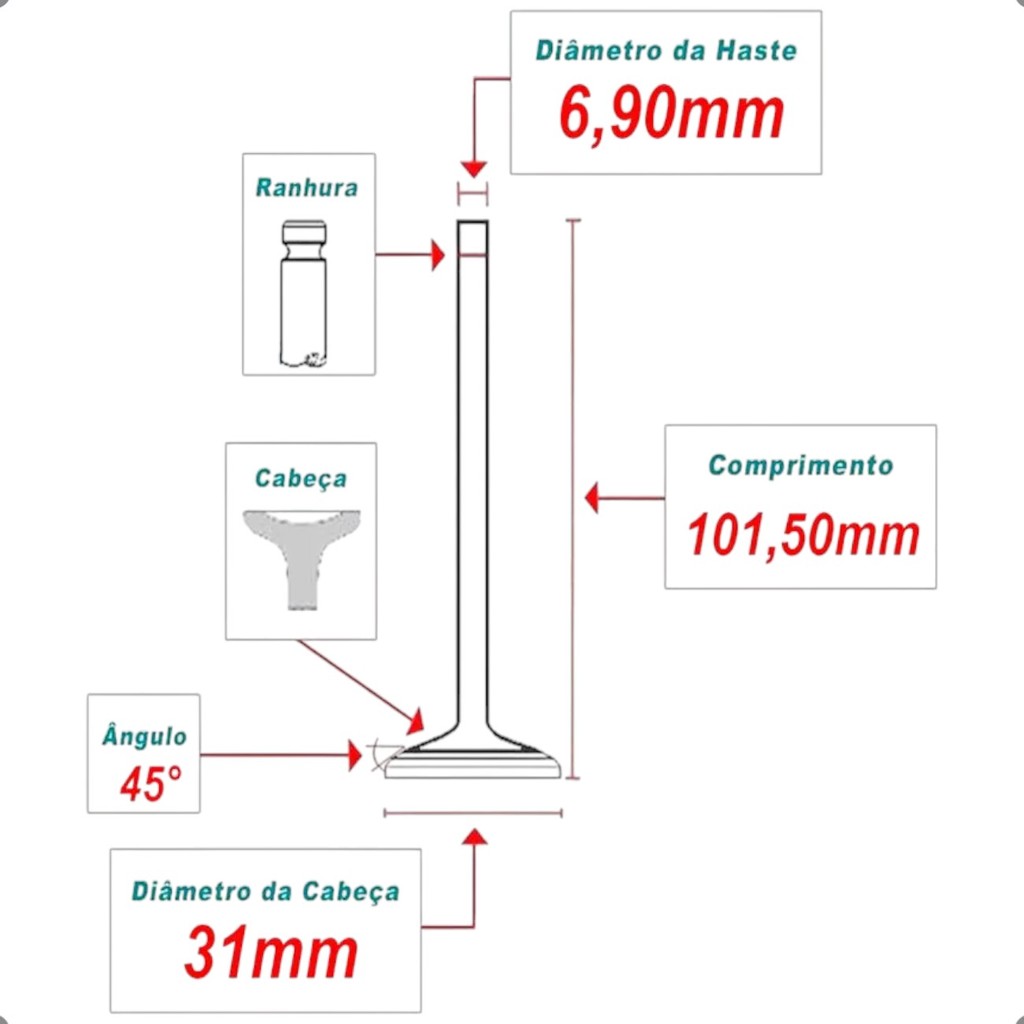 Kit Valvula De Admissão e Escape 7mm Corsa Meriva Montana Doblo Palio Siena Stilo 1.8 8v 2003 a 2009
